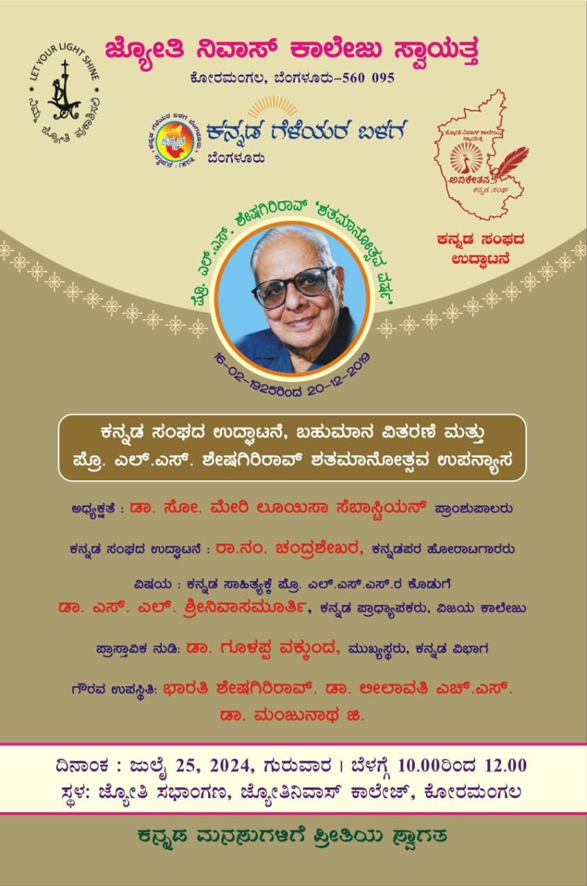 Sri L S sheshagiri Rao Centinary programme. Special Guest Lecture from Srinivasamurthy, professor from Vijaya College organized by the department of Kannada